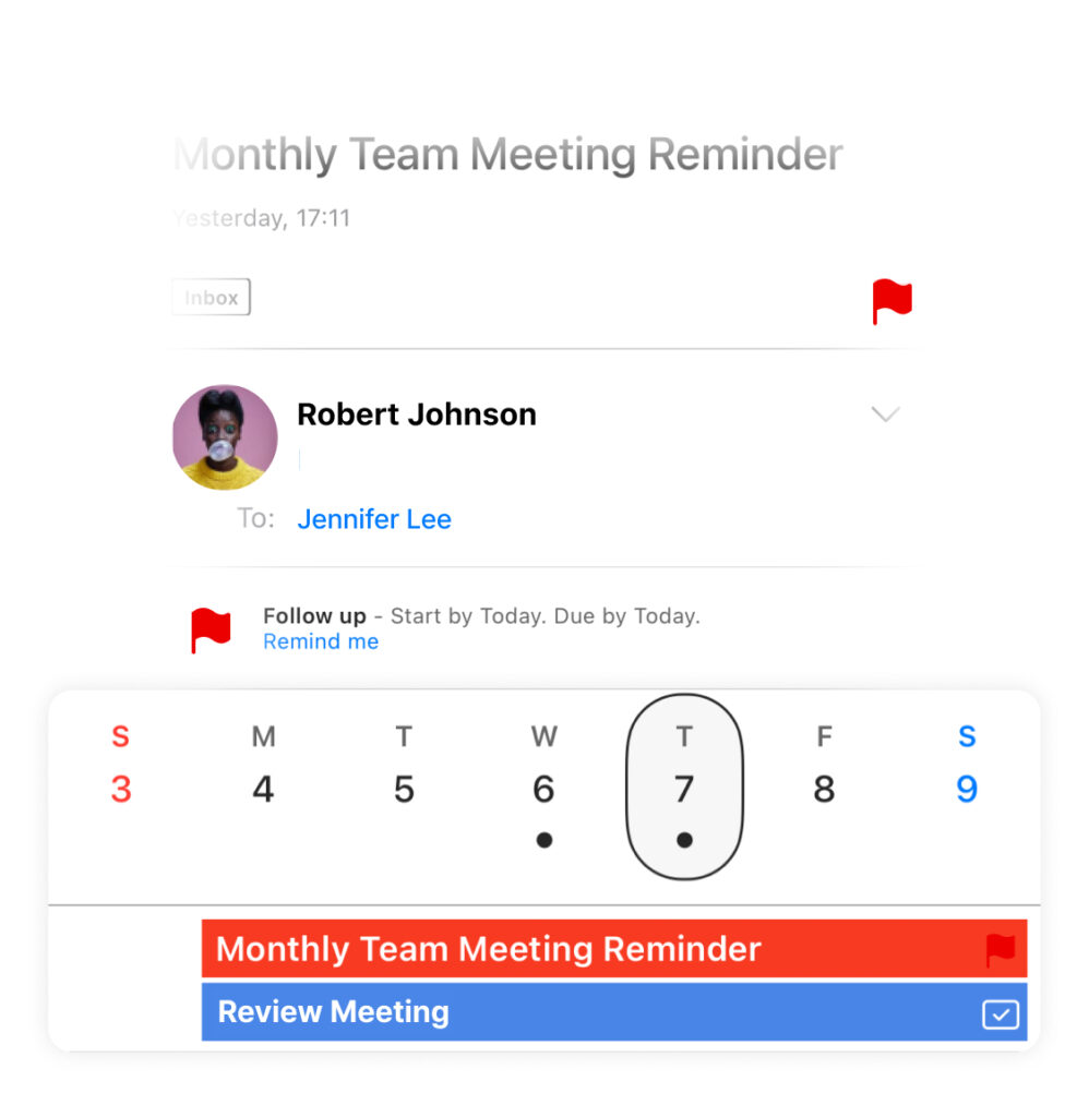 Flagged emails are displayed alongside tasks, allowing you to organize your day’s activities, upcoming deadlines, and emails needing attention without switching screens.